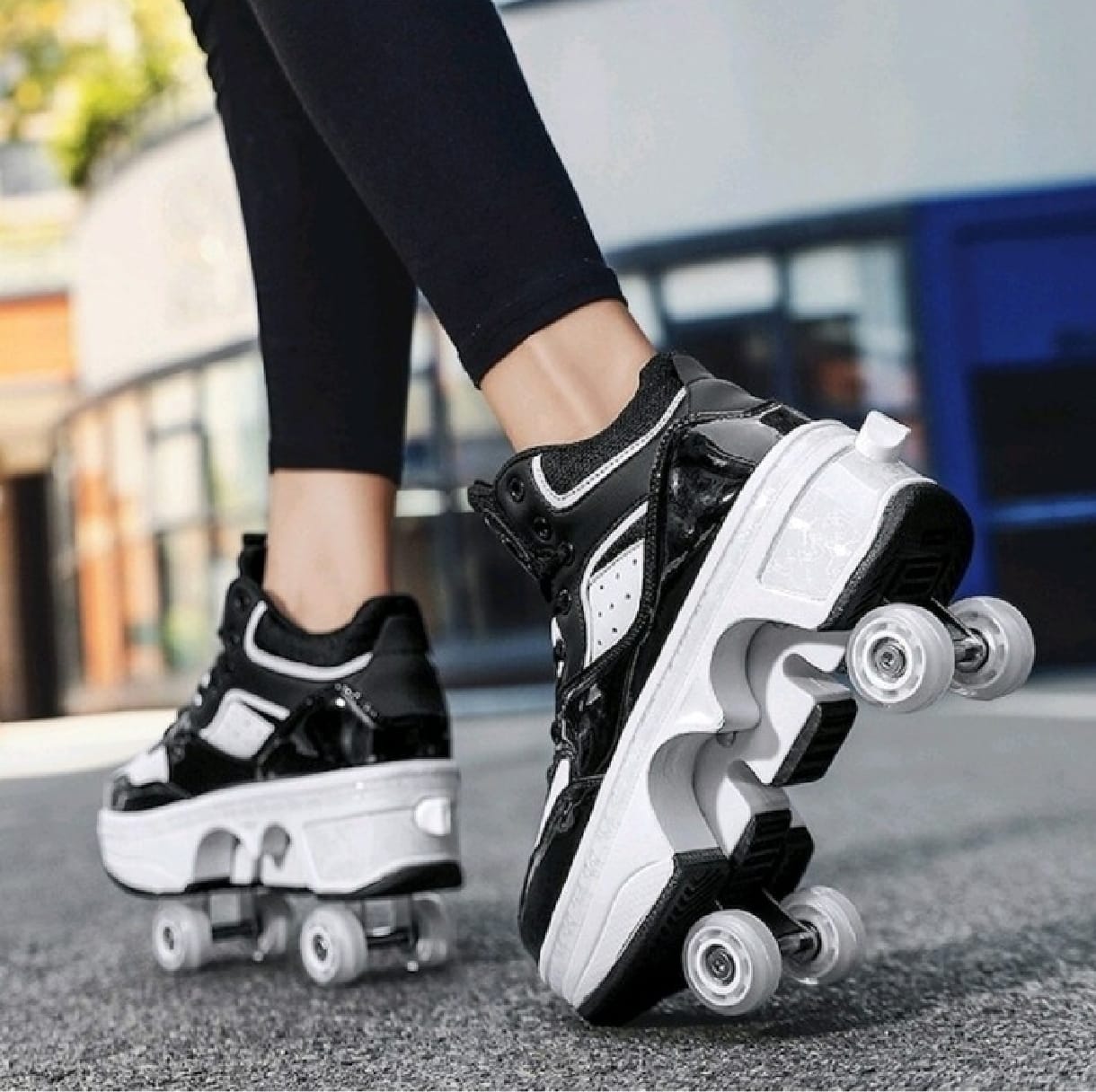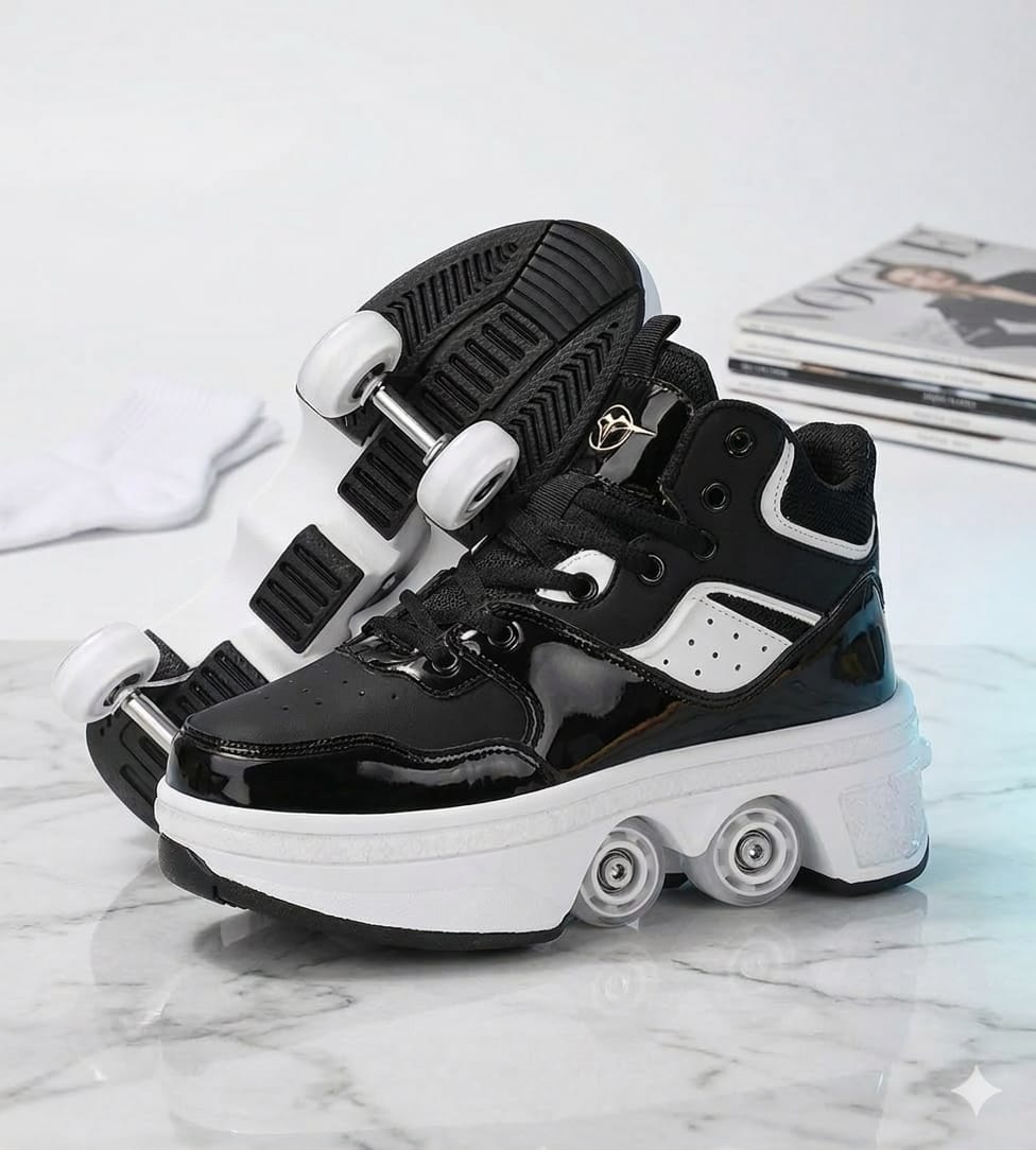 Yürüyüşe çık, tekerleğe geç – tek tuşla! Günlük şıklığı ve eğlenceyi bir arada sunan spor ayakkabı ile patenin mükemmel birleşimi!