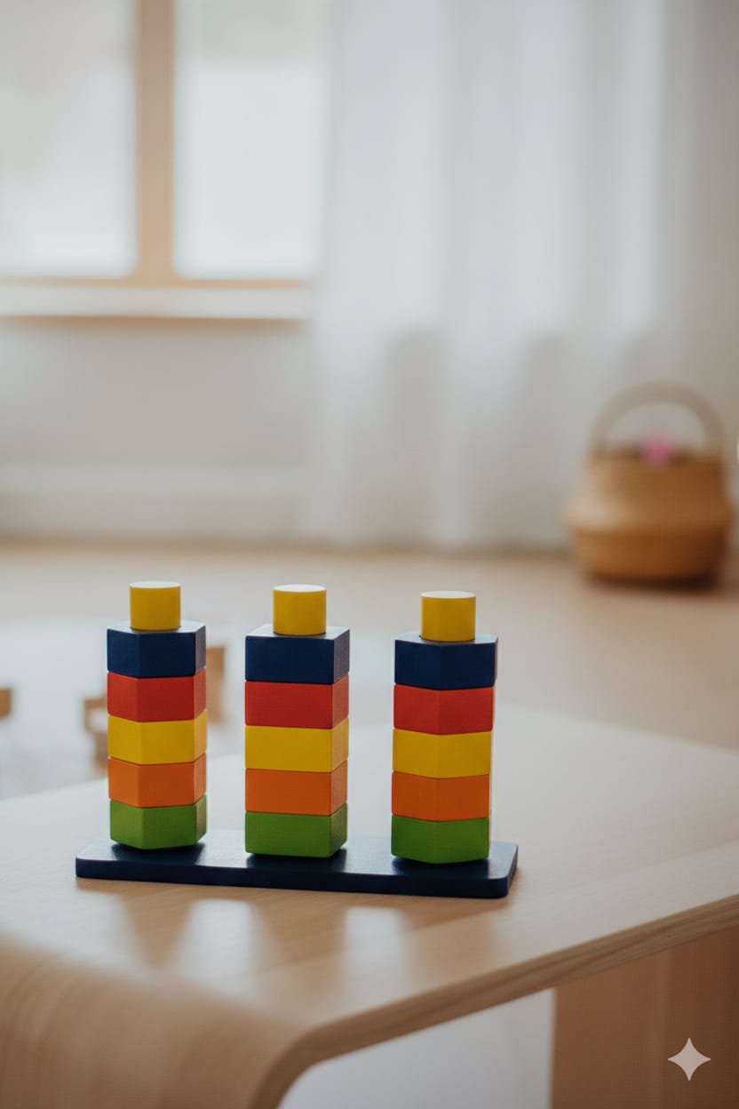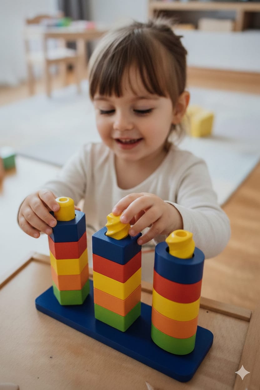 Bu Montessori uyumlu şekil eşleştirme oyuncağı, çocukların zihinsel ve fiziksel gelişimine katkı sağlarken eğlenceli vakit geçirmesini sağlar.; 🎯 Gelişim Avantajları: ✔️ İnce motor becerilerini geliştirir ✔️ El-göz koordinasyonu kazandırır ✔️ Renk ve şekil algısını güçlendirir ✔️ Problem çözme ve odaklanma becerilerini destekler 🌿 Doğa Dostu Malzeme: Oyuncağımız, organik ve BPA içermeyen PLA malzemeyle 3D yazıcıda üretilmiştir.; Çocuklar için tamamen güvenli, çevre için sürdürülebilirdir.; 🧩 Ürün İçeriği: 1 adet dayanıklı zemin tabanı 3 adet farklı geometrik çubuk 15 adet renkli şekil bloğu (kare, daire, altıgen) 👶 Tavsiye Edilen Yaş: 12 ay ve üzeri 🧽 Kolay temizlenebilir yüzey 🎁 Harika bir hediye alternatifi